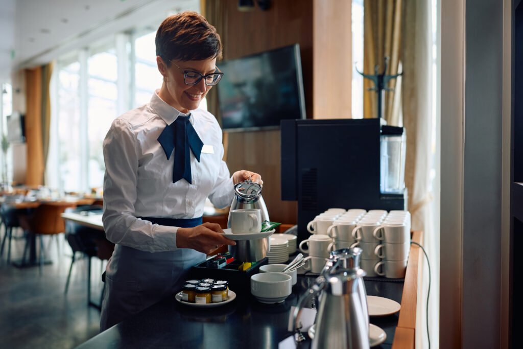 High-capacity bean-to-cup machines are ideal for lobby areas where guests expect fresh coffee throughout the day. These systems grind, brew, and dispense specialty drinks at the touch of a button. The result is a professional presentation that complements the hotel’s brand image.